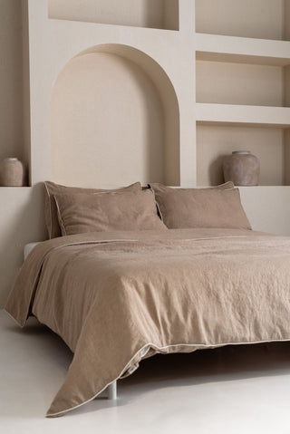 Chocolate Linen Duvet Cover Set with White Piping