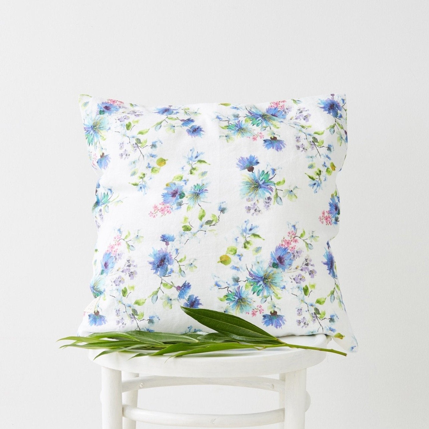 LIMITED EDITION White Flowers Linen Cushion Cover