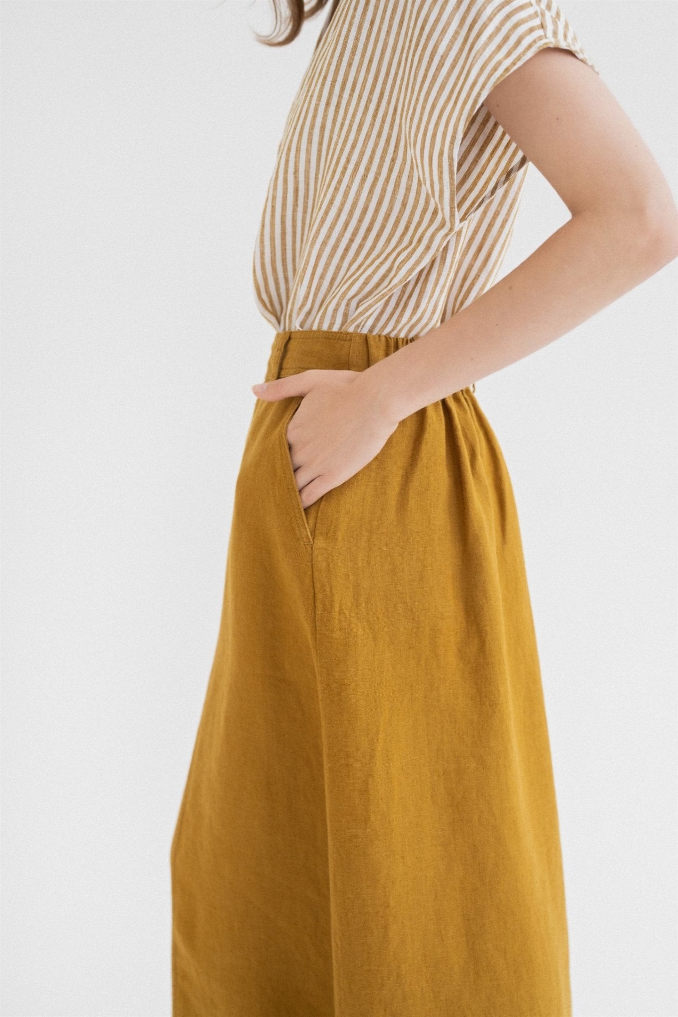 This incredibly versatile piece features delicate ruffles, belt loops, and decorative hem and zipper imitation in front. Style it with minimalistic tops and unbuttoned shirts for an infallible outfit, or pair it with jackets or wool knits for something more adventurous and creative.