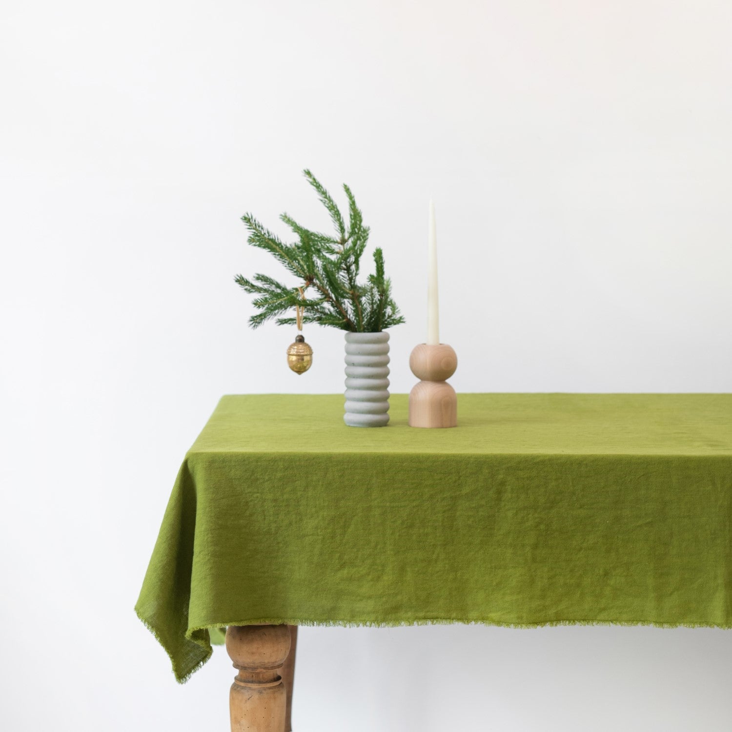 Gather your loved ones around a beautifully set Christmas table. Whether going for an understated or luxurious look, this elegant Linen Tablecloth with Fringe is guaranteed to set a joyful holiday mood. Hand-made of high-quality European linen, it will be a stunning addition to your dining room.