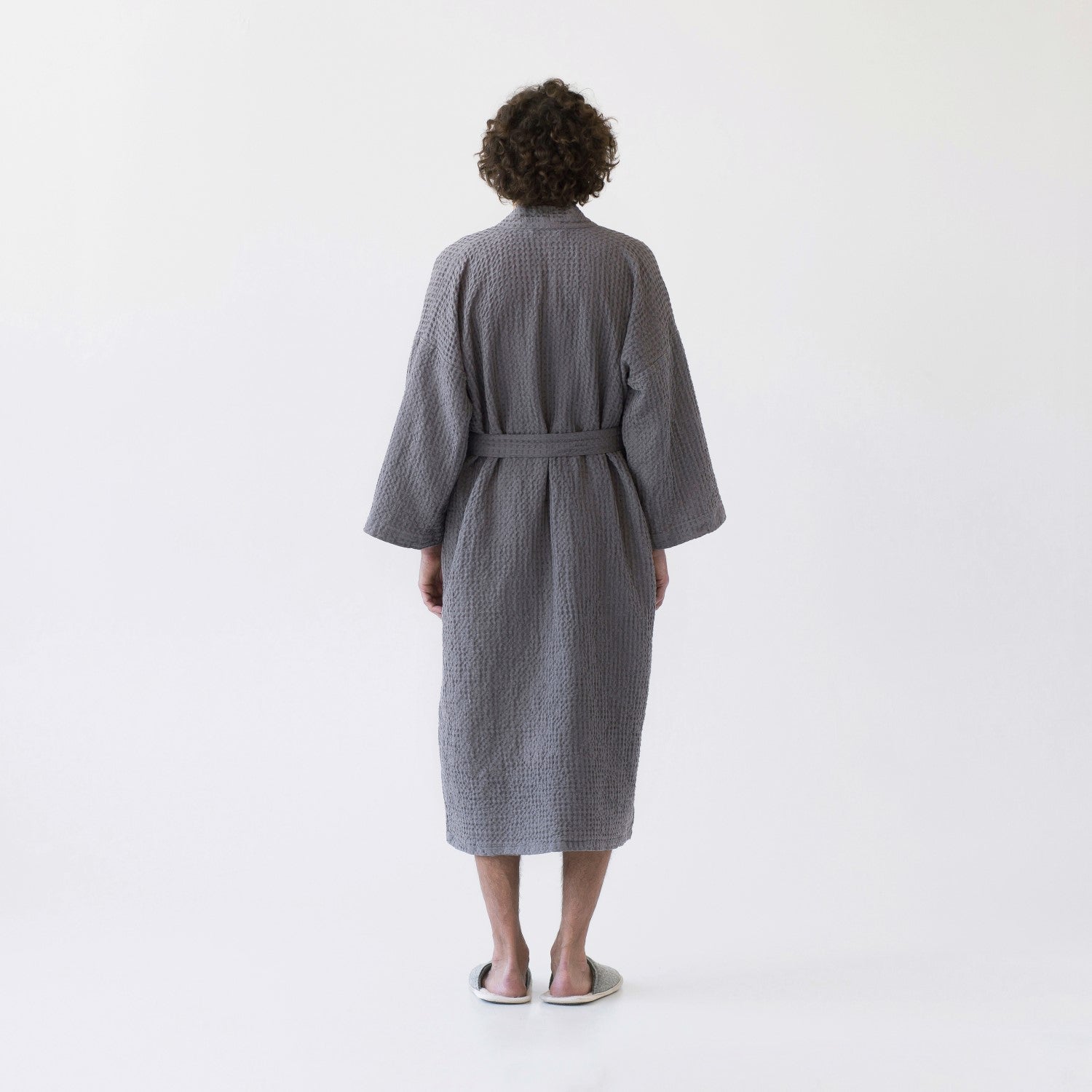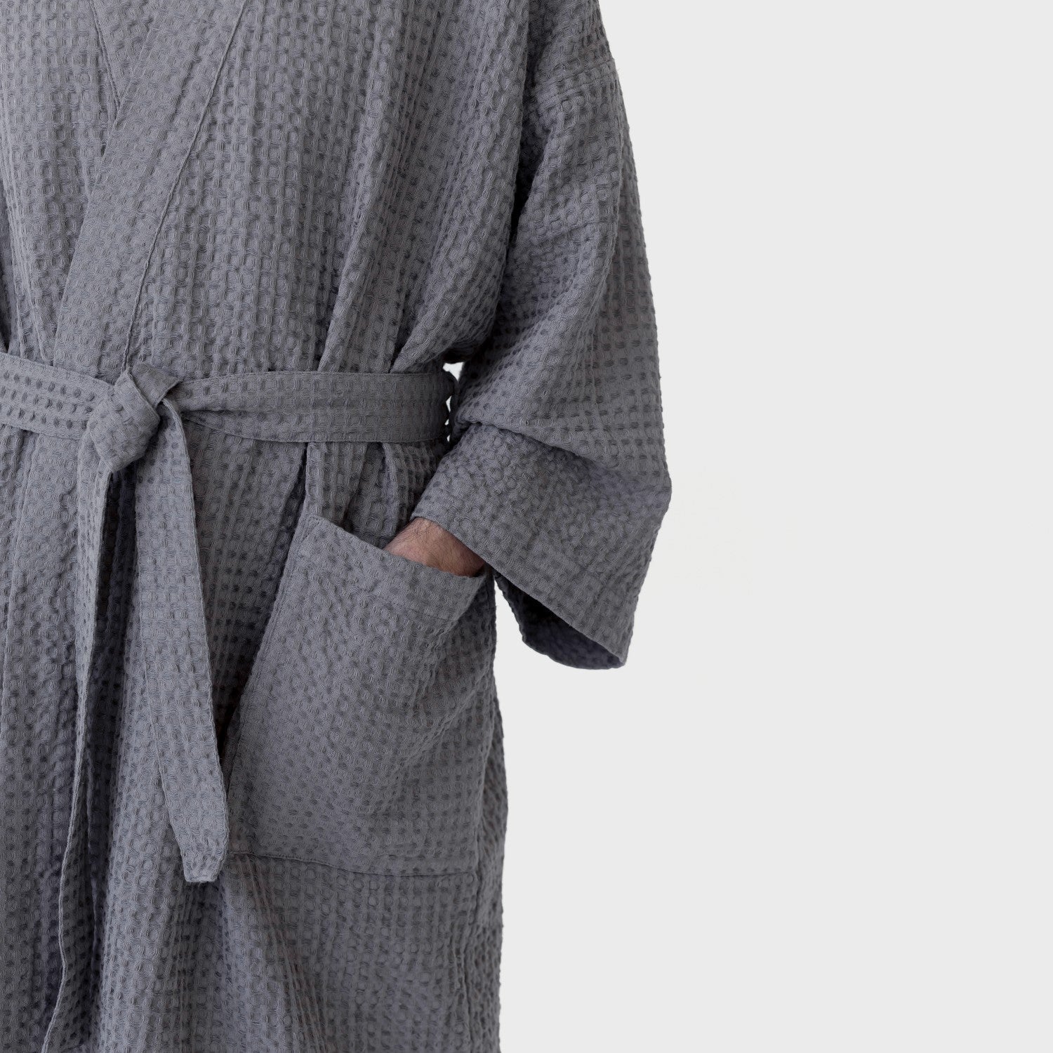 Dark Grey Linen & Cotton Honeycomb Waffle Bathrobe