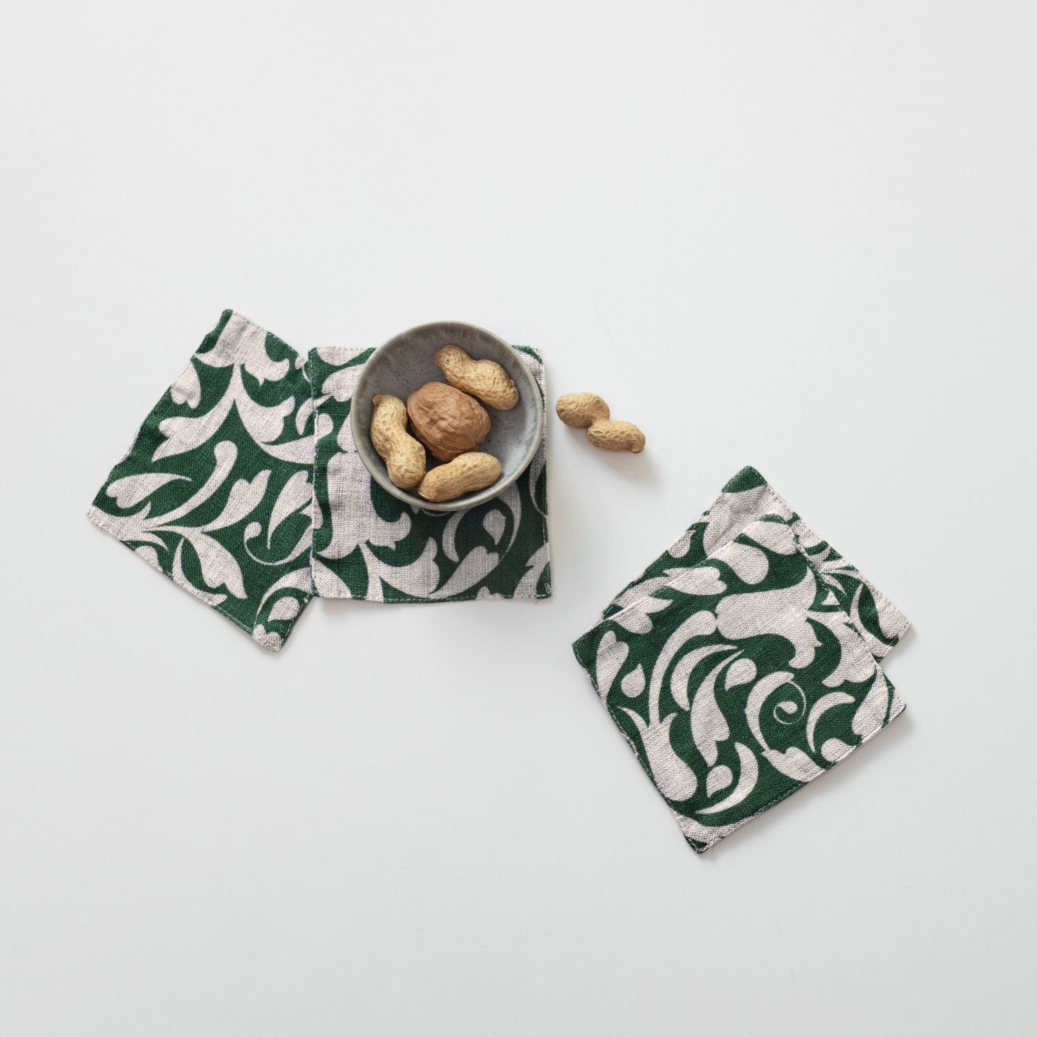 Evergreen Damask Linen Coasters Set of 4