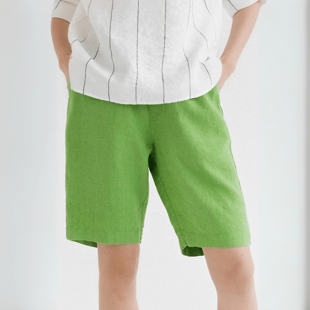Foliage Green Linen Cumin Shorts
