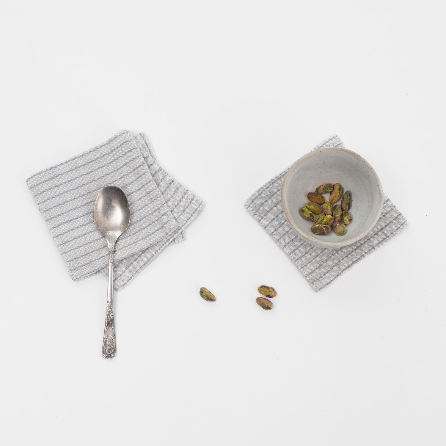 Grey Blue Pinstripe Rustic Linen Coasters Set of 4