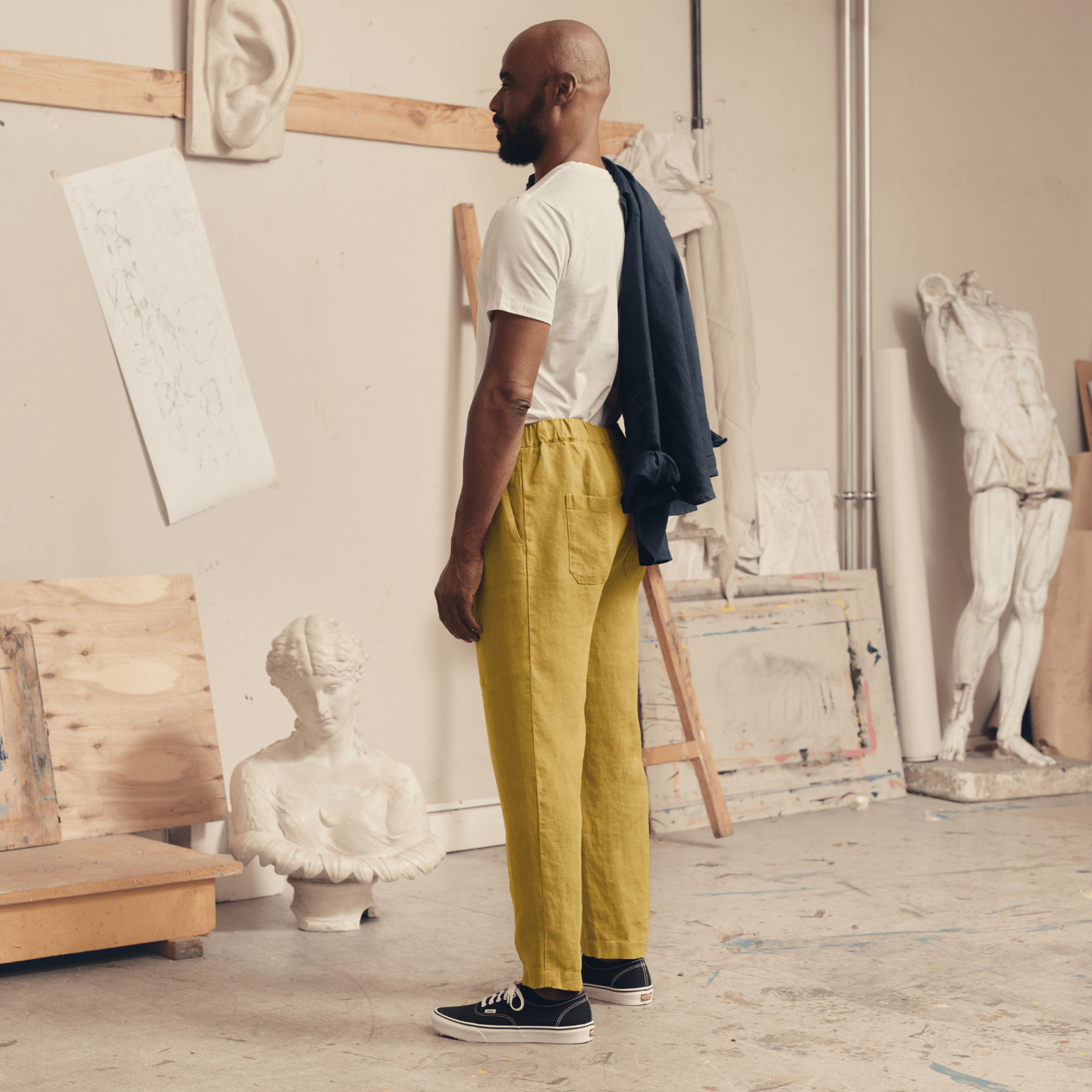Loose fit and a ribbed waist make the Acorn a perfect everyday trouser. Made in several beautiful colors, it will surely complement any wardrobe. And since linen tends to get softer with every wash, it will surely become a trusted favorite during both weekends and weekdays.