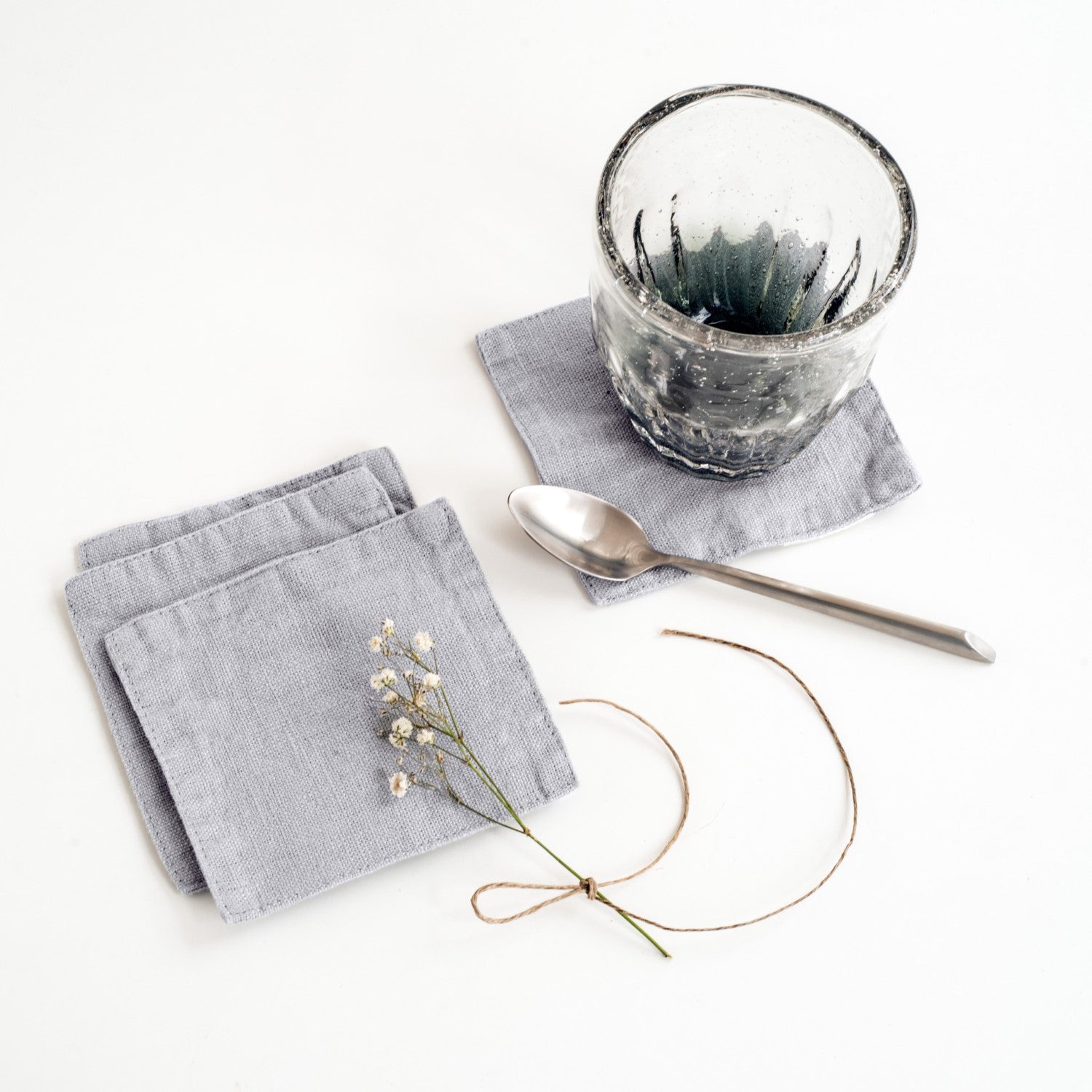 Sophisticated touch of magical and functional Linen Coasters. Hand-made using 100% European linen. Use them independently or style them with your favorite table linen pieces. Mix and match to find the perfect balance for beautiful daily moments.