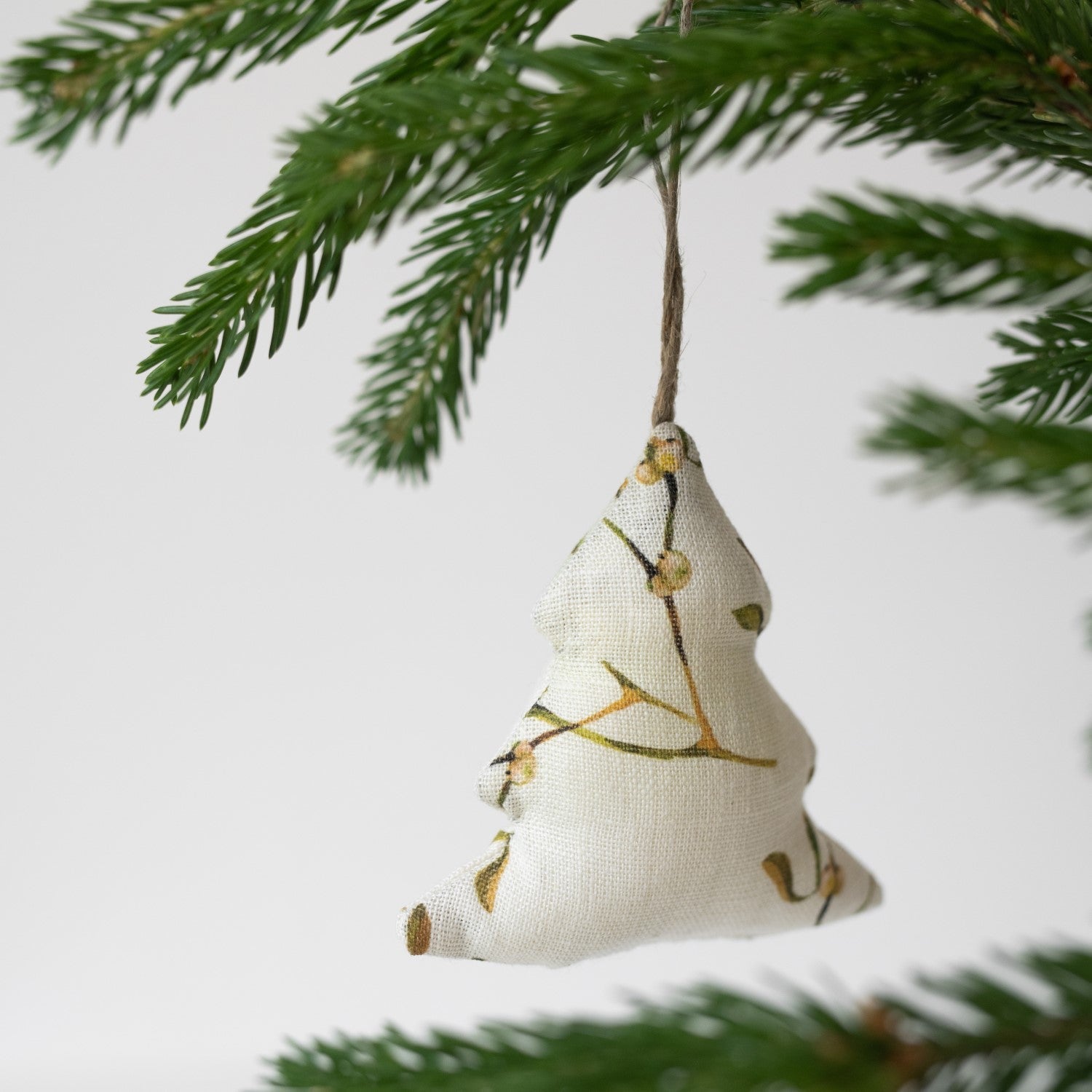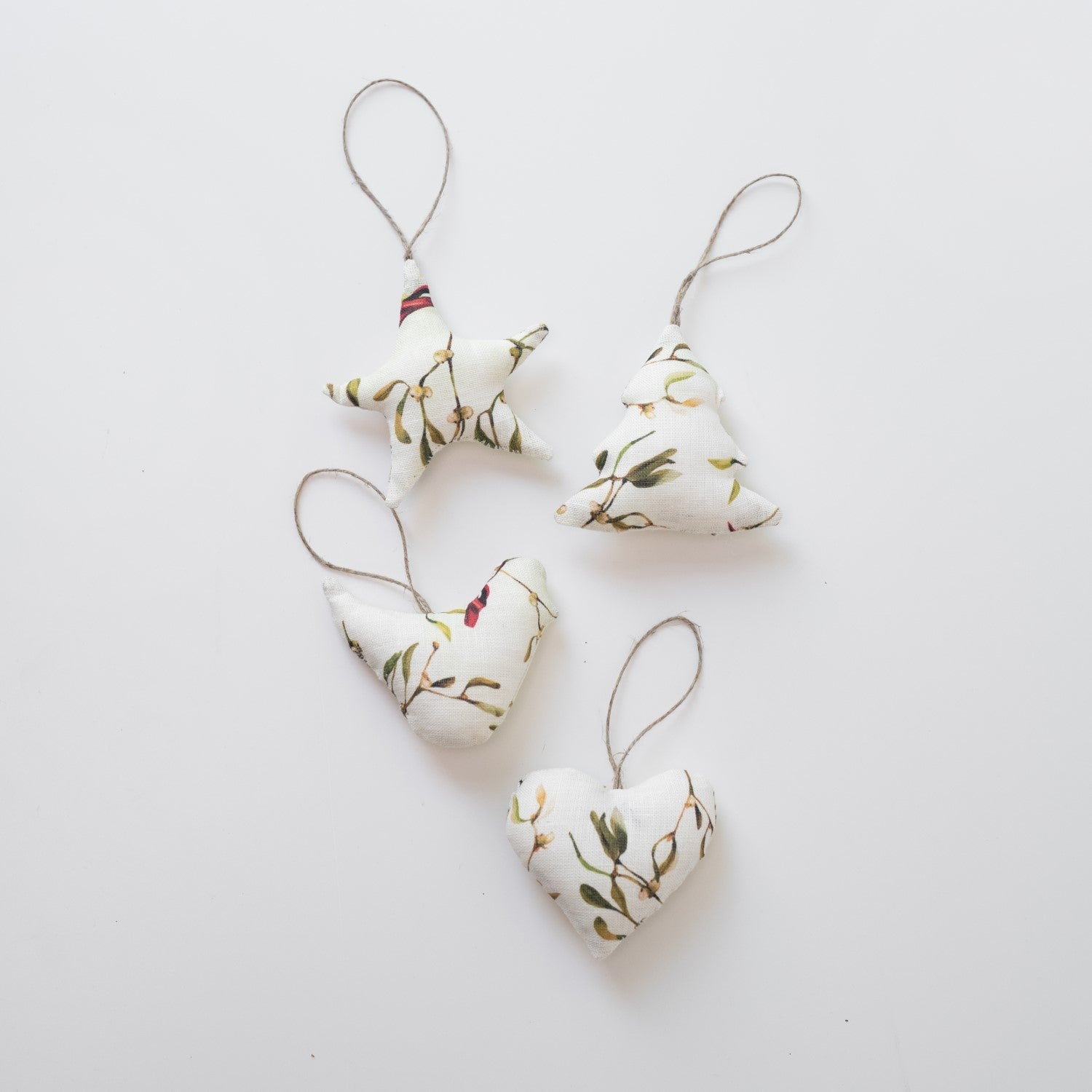 Mistletoe Linen Christmas Tree Decorations Set of 4