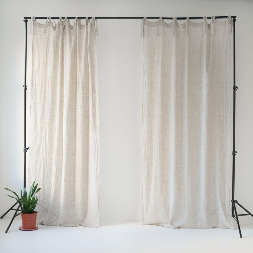 The Linen Daytime Tie Top Curtain is one of those stylish models you can't miss. A perfect thread ratio that lets enough light in your room gives you privacy and comfort. The neat ironed look or naturally wrinkly look will make your home more inviting and cozy. Tie tops make it easy to hang this curtain.
