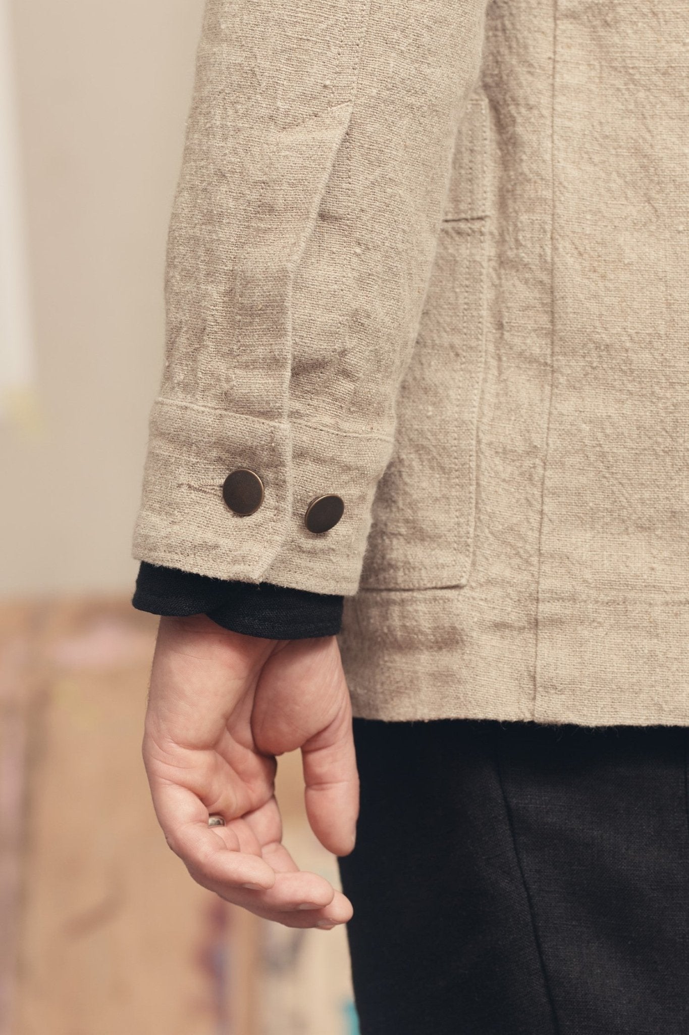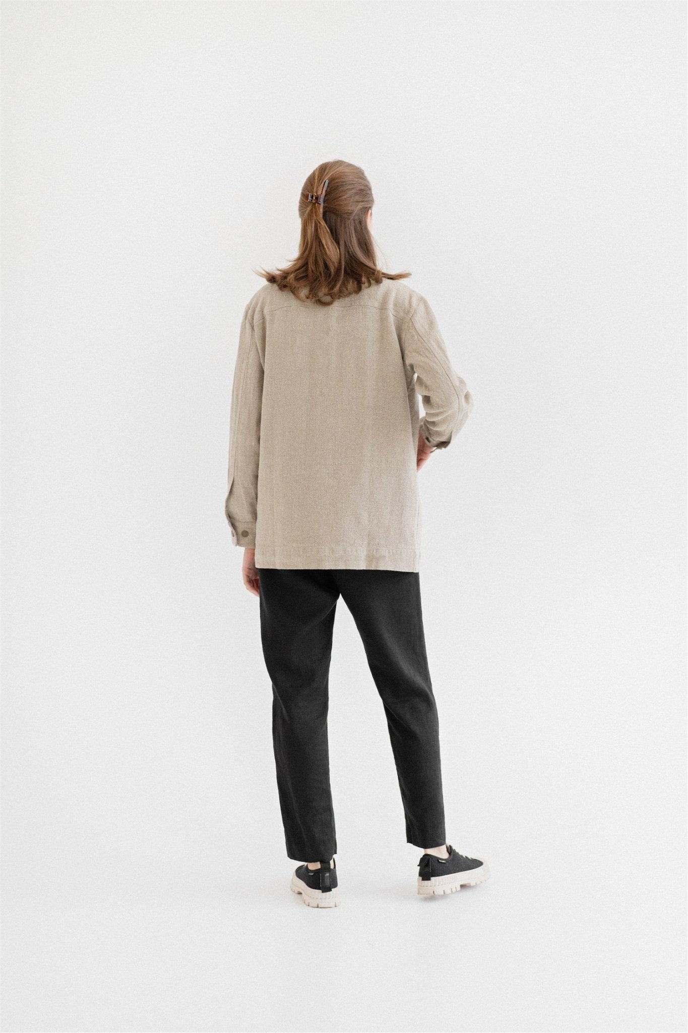 Meet Maple - the unisex utility jacket for your daily outfit. Equipped with spacious pockets and metal buttons, this modern-cut piece is handmade from a thick and durable linen fabric, so it is perfect for chilly days or… whenever you feel like wearing it!