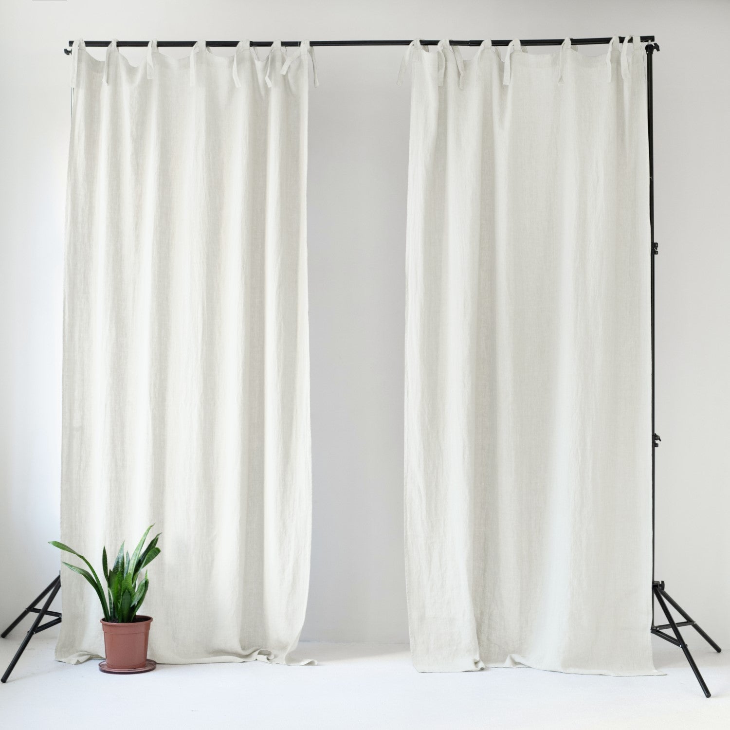 Off-White Linen Night Time Tie Top Curtain Set of 2