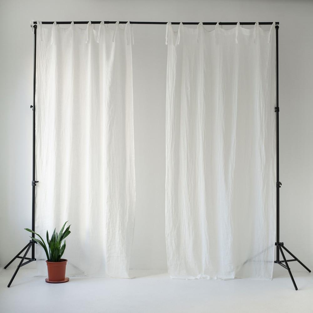Optical White Linen Daytime Tie Top Curtain Set of 2