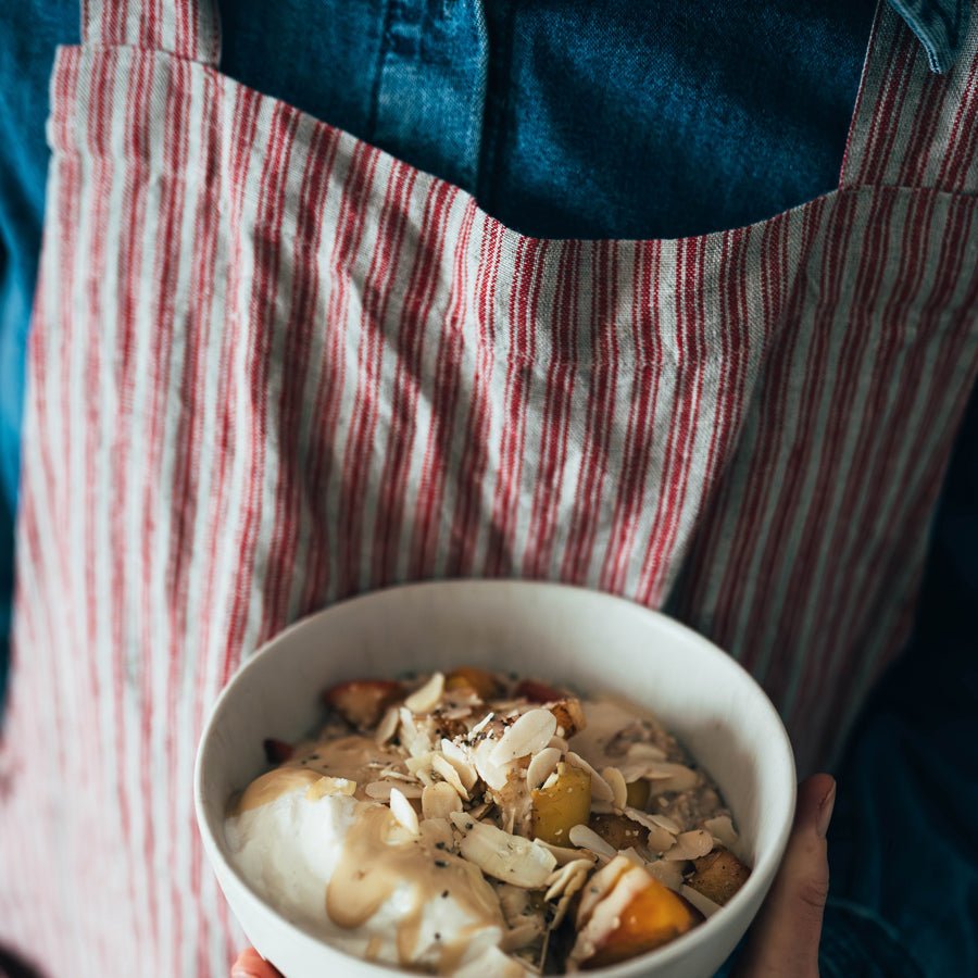 A perfect surprise for anyone that loves cooking or is learning how to cook. The Linen Crossback Apron is comfortable as it has no ties and is easy to put on and off. The humble piece of fabric to bring you joy while cooking.
