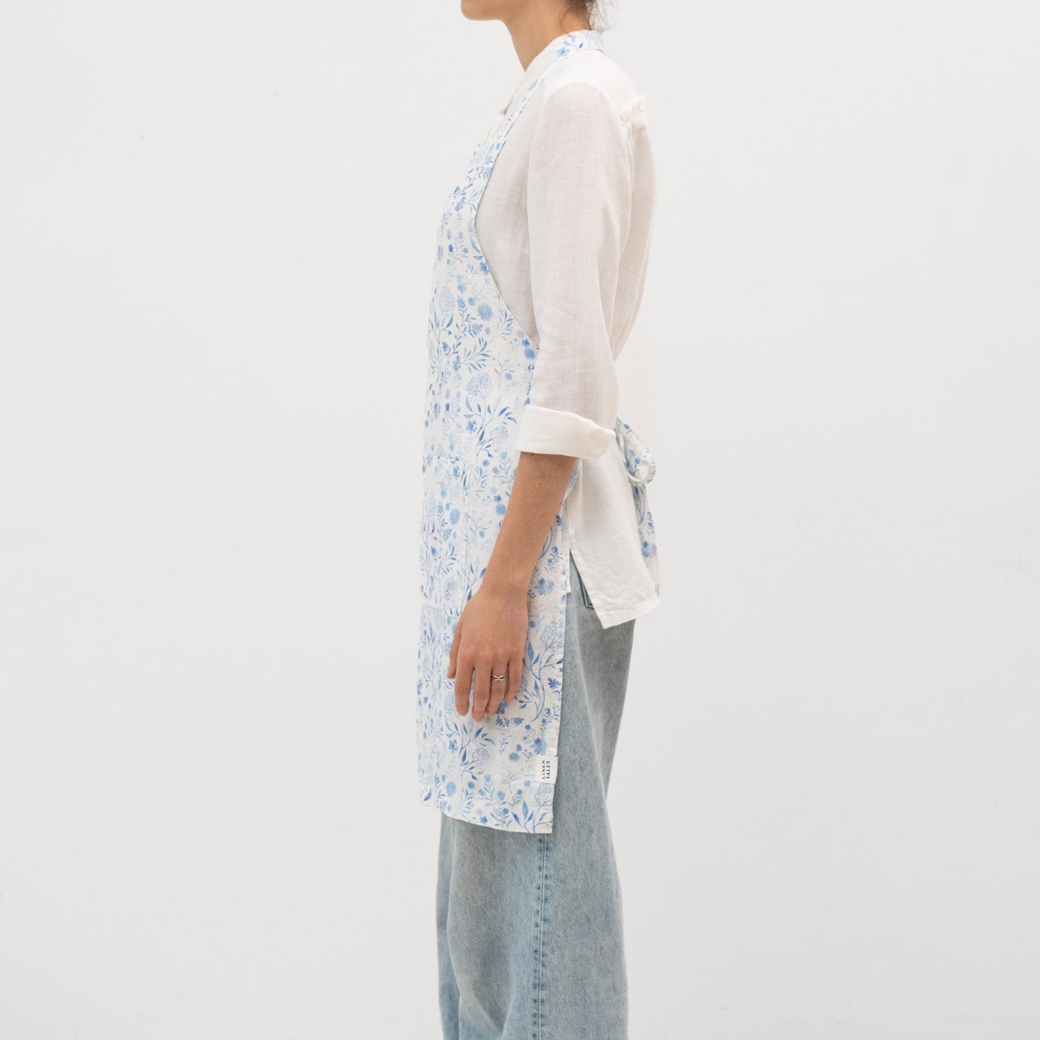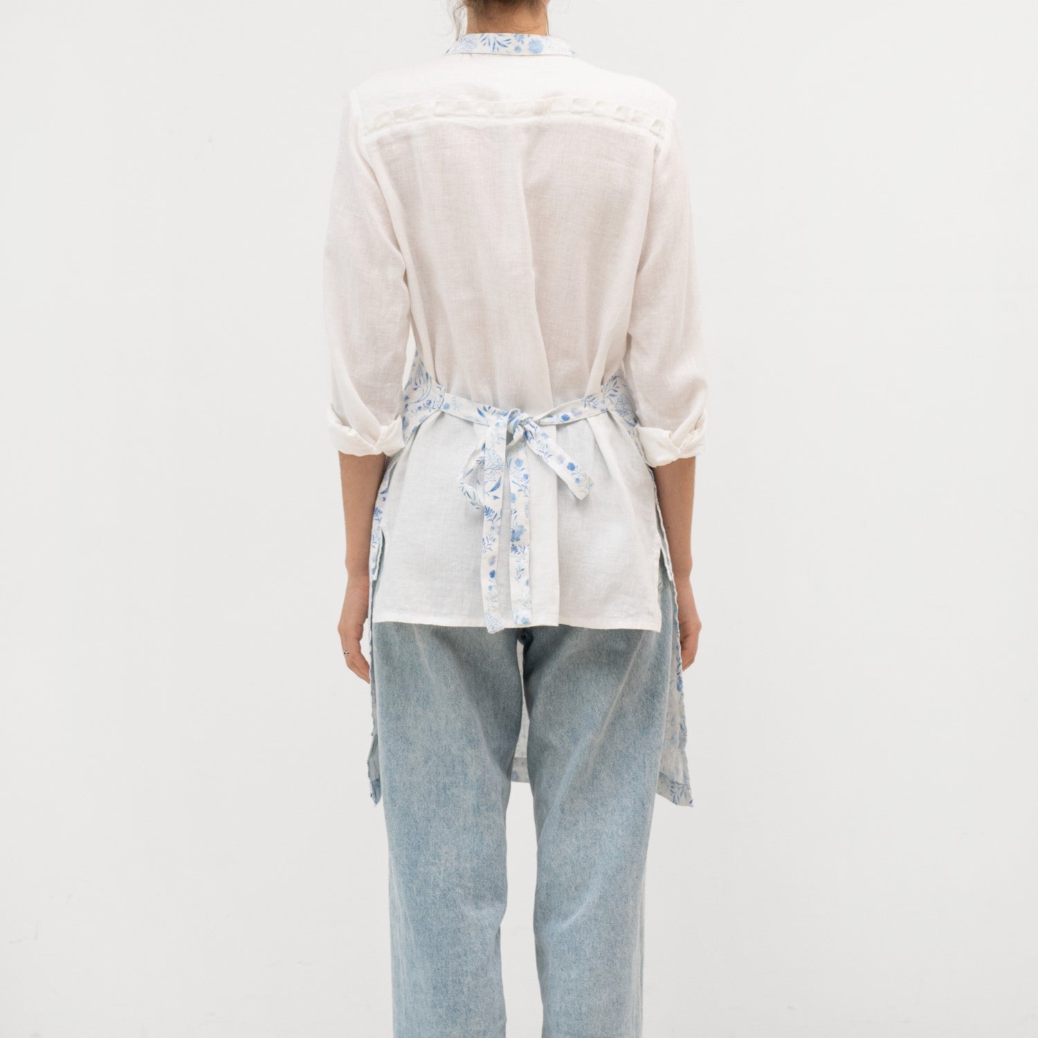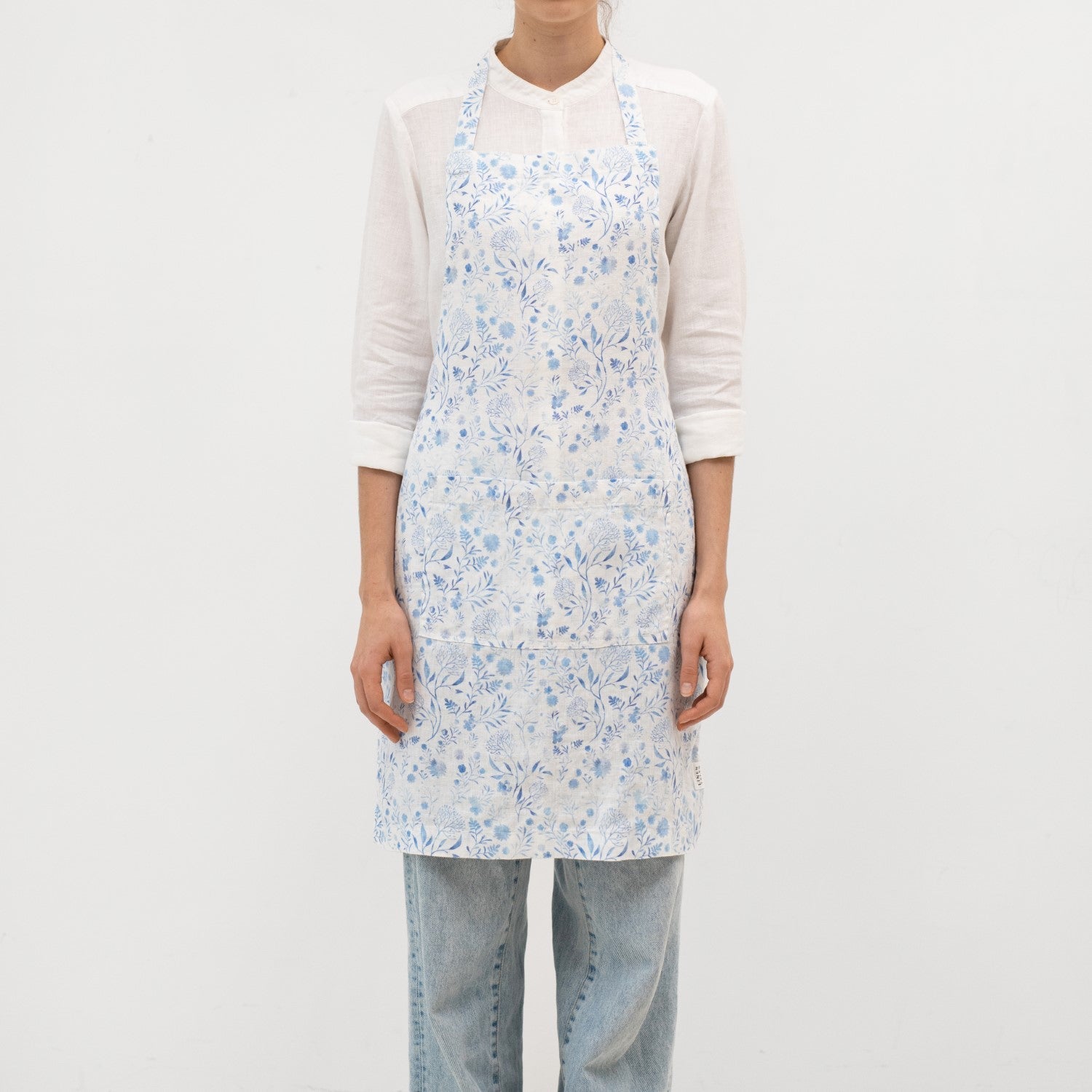 White Botanical Blue Linen Daily Apron