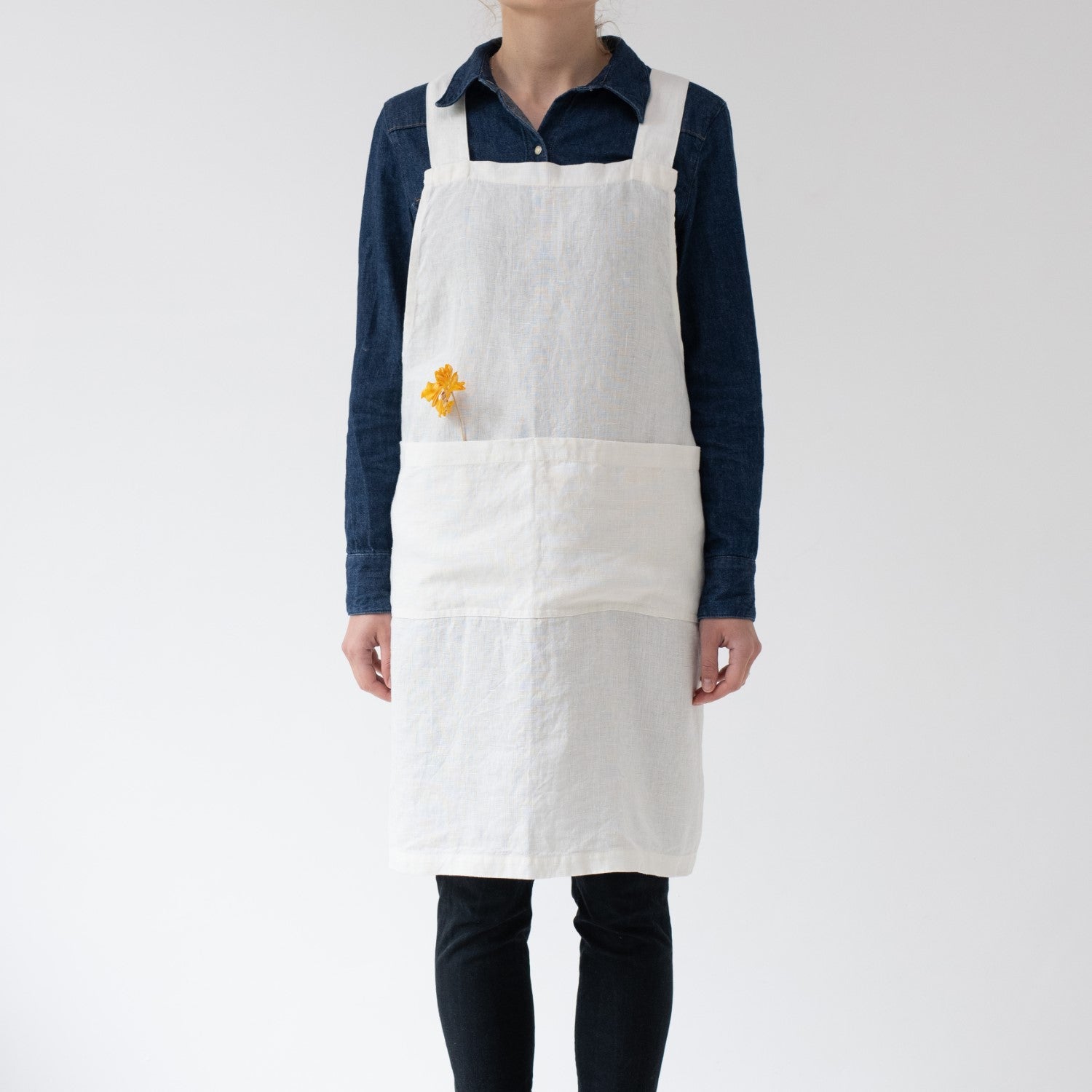 White Linen Crossback Apron