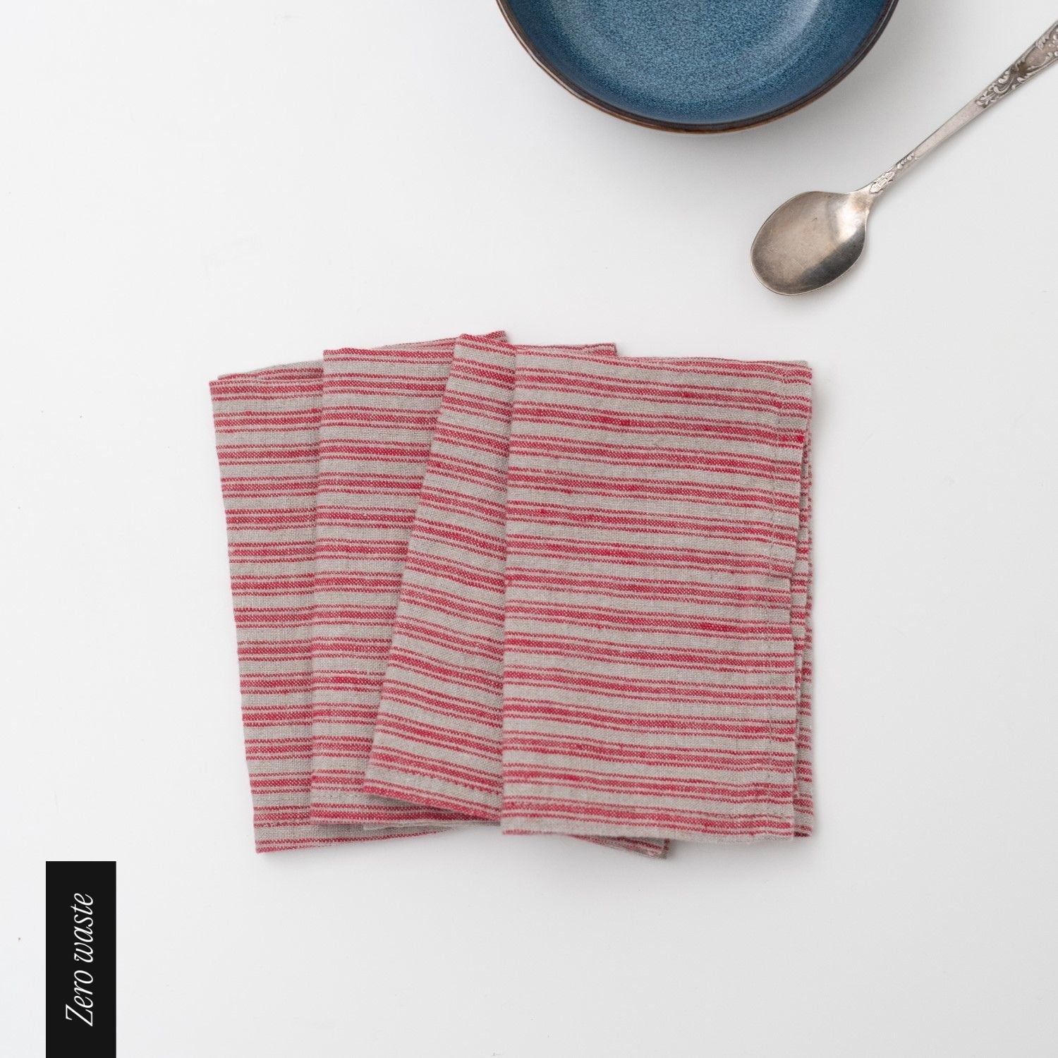Zero Waste Red Natural Stripes Linen Napkins Set of 4