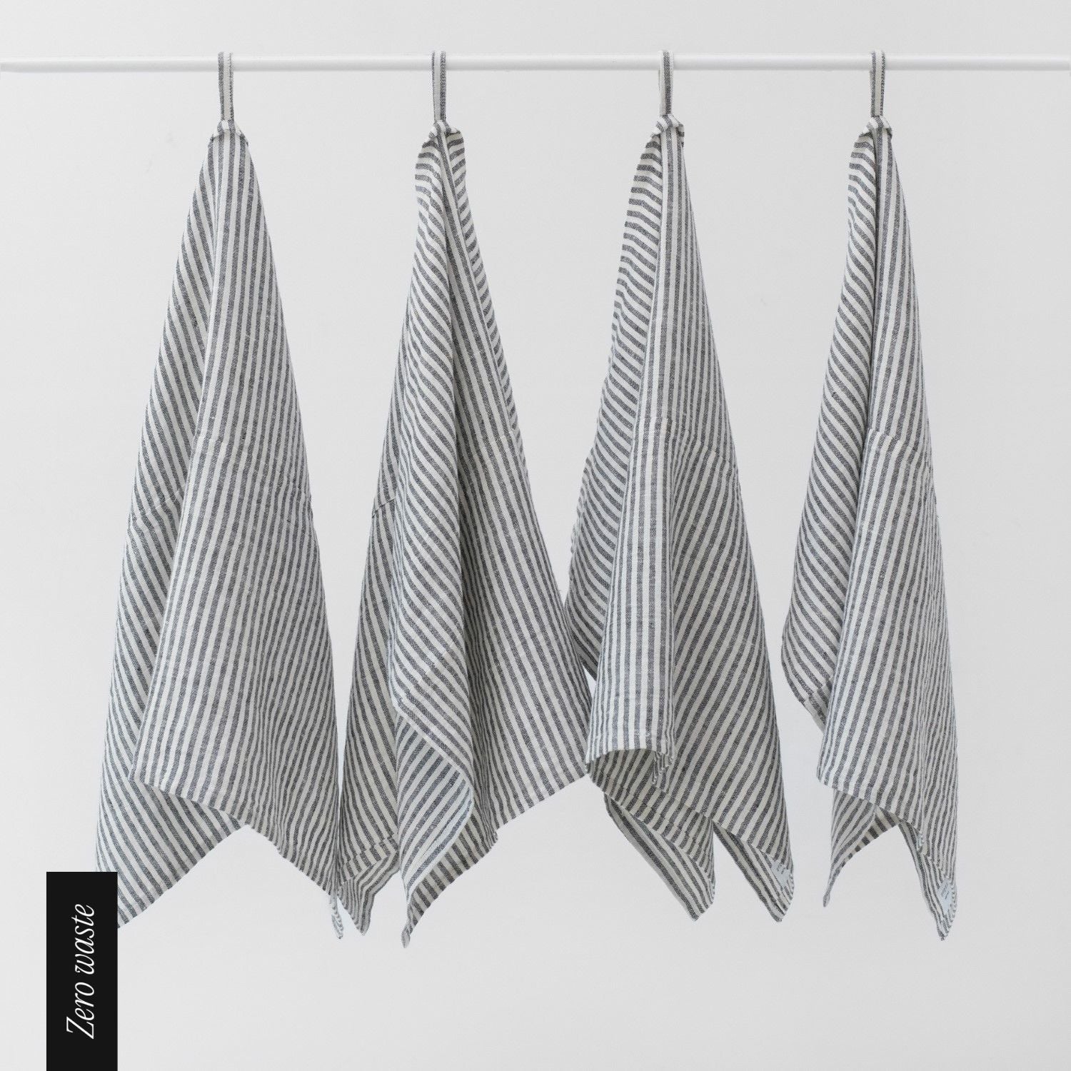 Zero Waste Thin Black Stripes Linen Kitchen Towels Set of 4