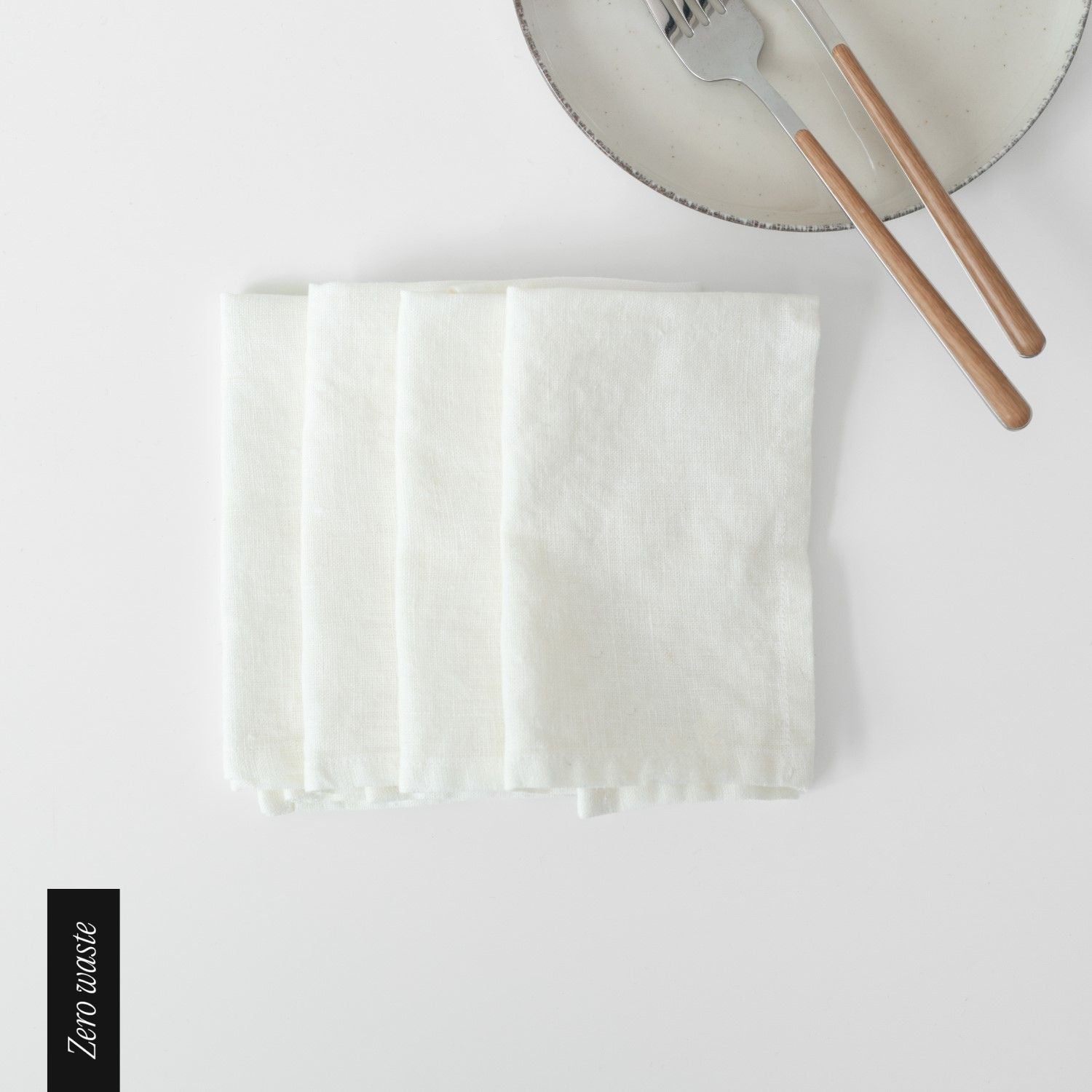 Zero Waste White Linen Napkins Set of 4